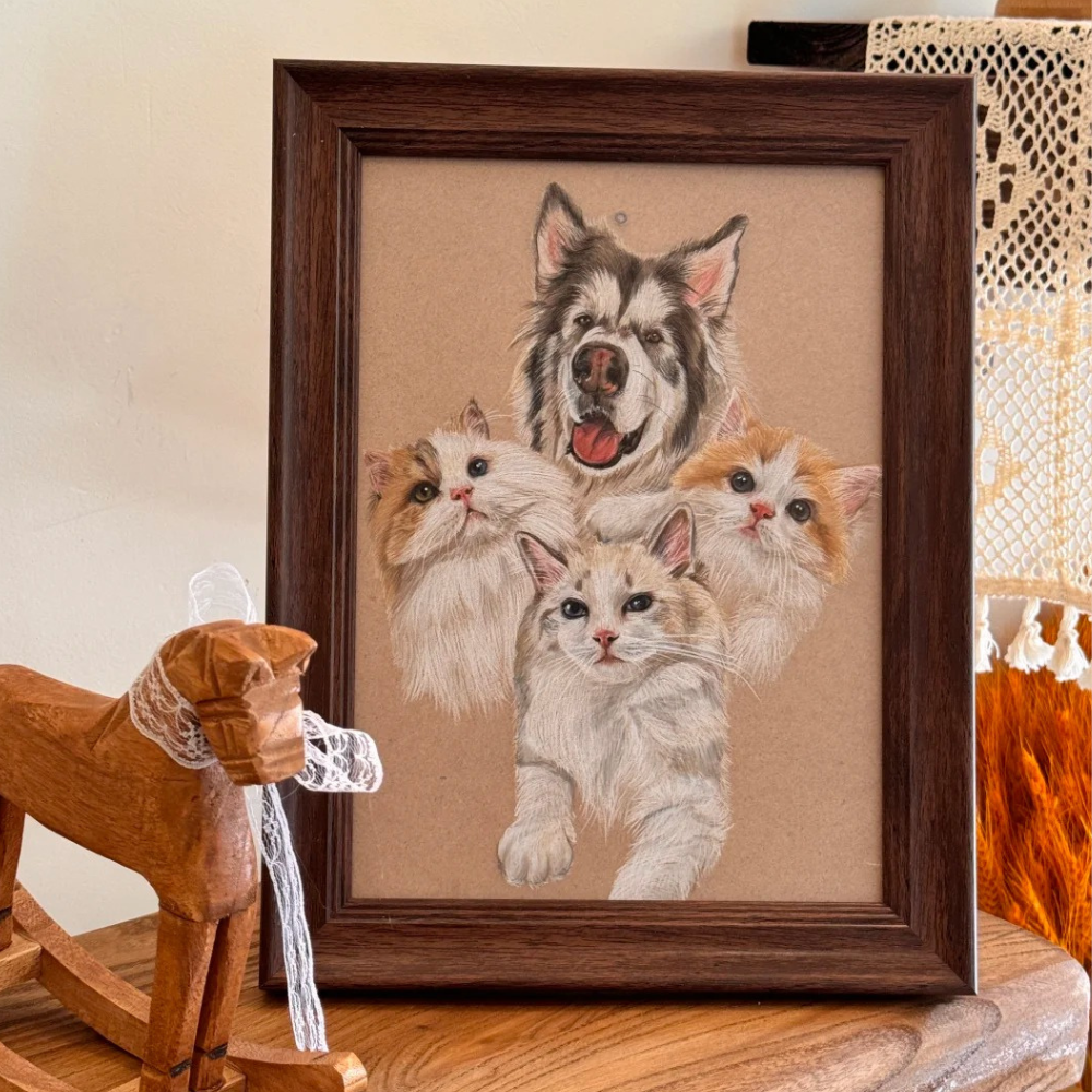 At Metis Grace, every artwork is created by skilled artists specializing in realistic pet and people portraits—no filters, no AI, no digital tricks. Just true craftsmanship.