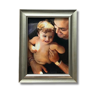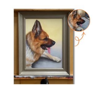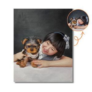 Transform your favorite photos—pets, family members, children, couples, weddings, or special moments—into a stunning hand-painted custom oil portrait in a classic vertical rectangle format.