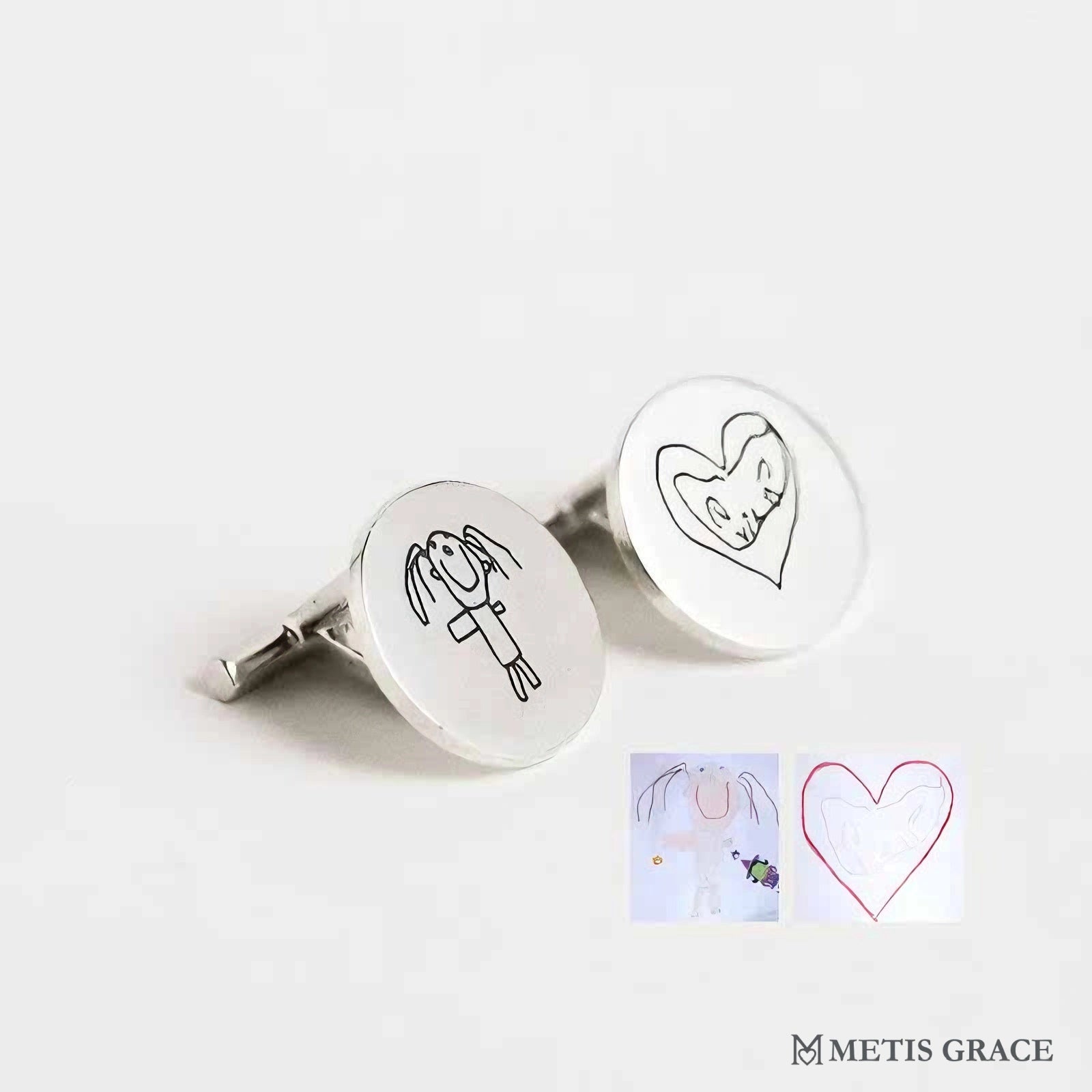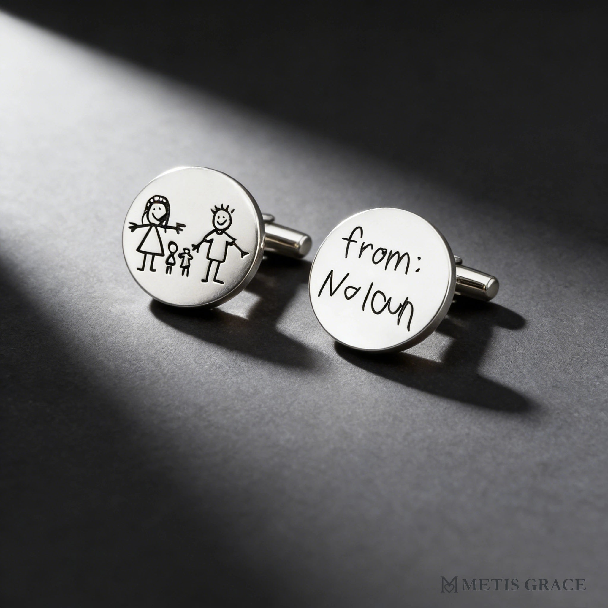 Turn your child’s drawing into a timeless keepsake with Metis Grace’s Custom Engraved Cufflinks. A heartfelt gift that lets fathers carry a piece of their child’s creativity wherever they go – perfect for Father’s Day or any special occasion.
