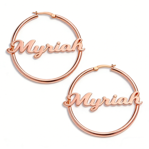 These custom name hoop earrings by Metis Grace are crafted from S925 sterling silver and finished with eco-friendly plating for lasting shine. Designed to blend everyday elegance with personal expression, each pair is custom-made with your chosen name.