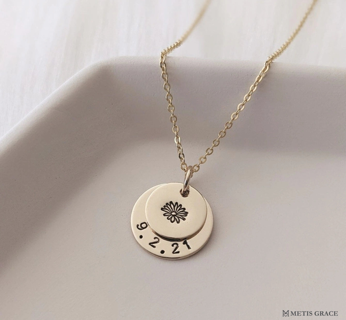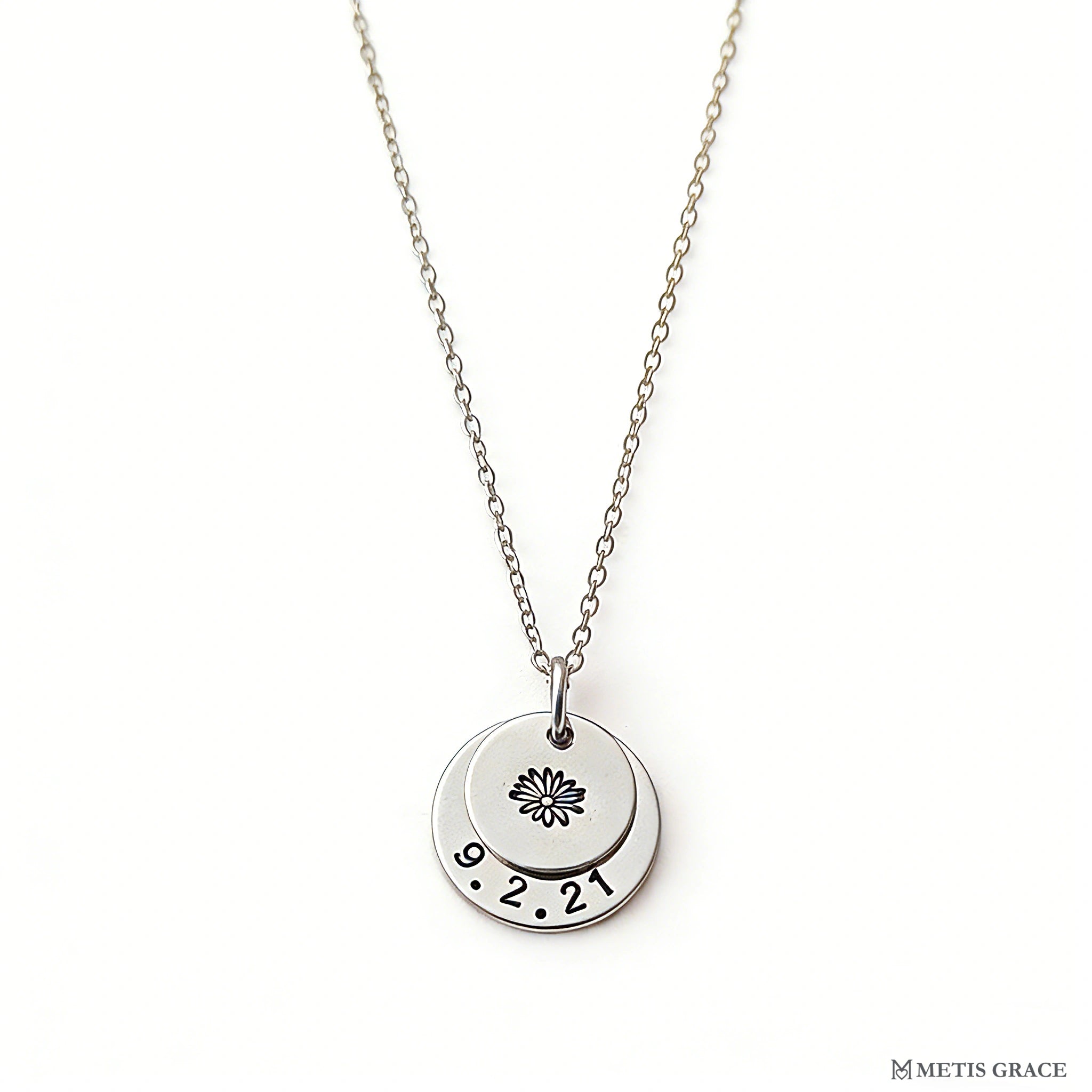 S925 Birth Flower Disc Necklace – Custom Engrave