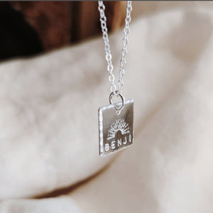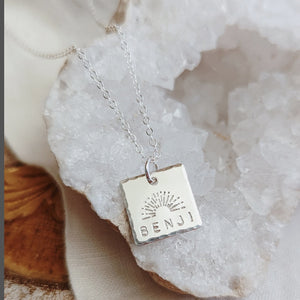 S925 Sterling Silver Custom Name Square Pendant Necklace
